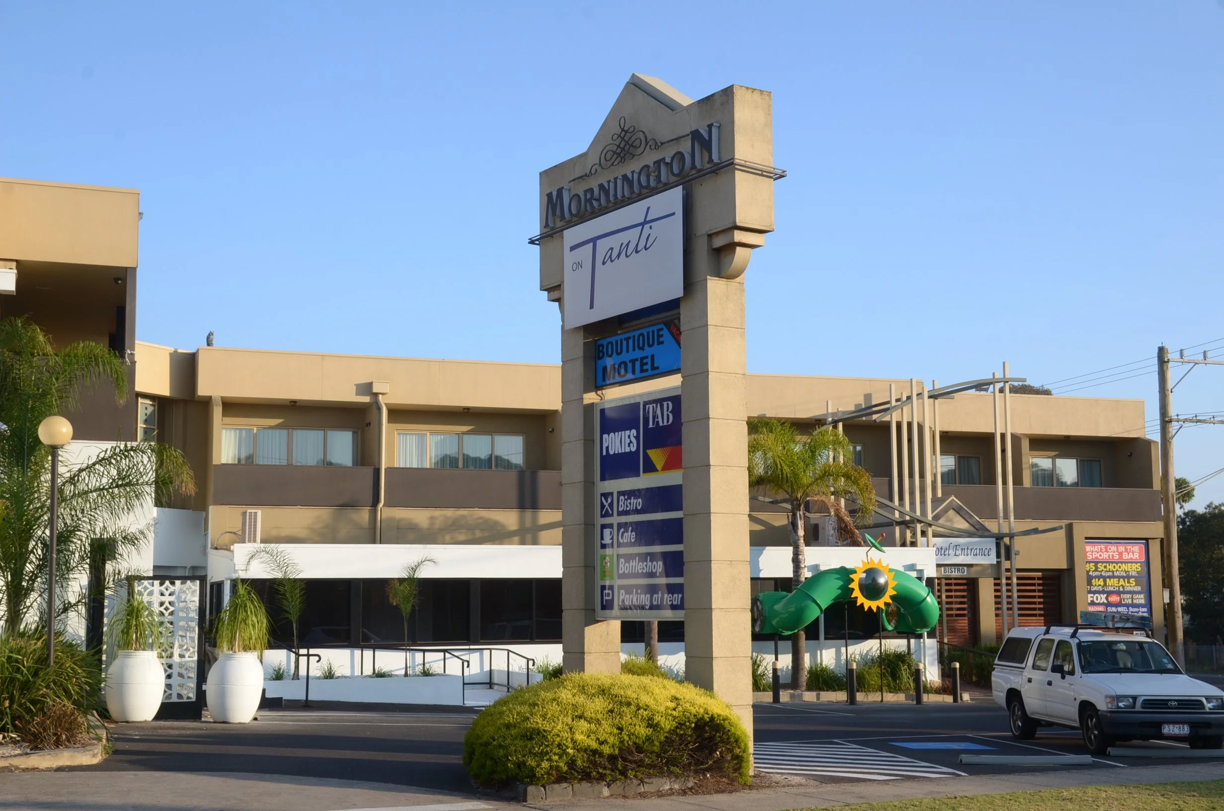 Today the Mornington Hotel offers a full-service bistro, a dedicated sports bar, two function spaces for up to 200 guests, boutique accommodation, and a Thirsty Camel bottle shop — all on the corner of Tanti Avenue and Nepean Highway, exactly where it has always been.